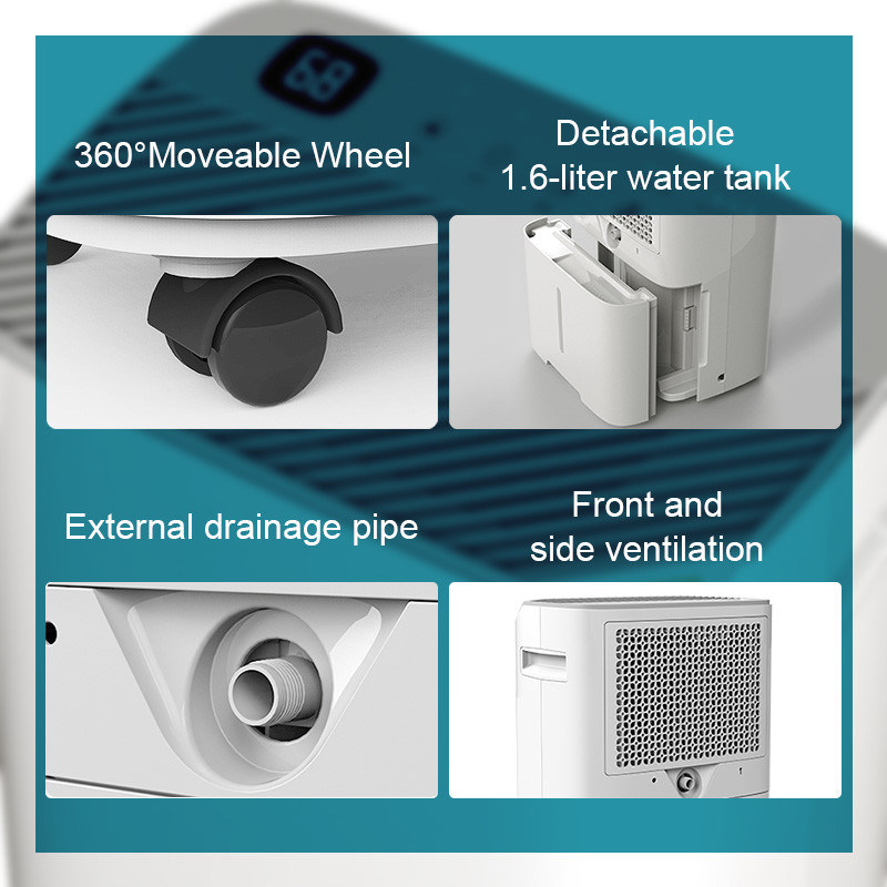 El deshumidificador del aire del parkoo es la solución perfecta para mantener su hogar cómodo y sin humedad. Con su capacidad del tanque de agua 2L, el peso 7.5KG, el flujo de aire del ³ /h del 180m, y una gama del control de humedad de 30%-90%RH y la gama de temperaturas de 5℃-35℃, el deshumidificador del parkoo mantendrá su espacio vital seco y cómodo. Si está controlando humedad en el dormitorio, el cuarto de baño, o el sótano, el deshumidificador del parkoo es la opción ideal para el deshumedecimiento del aire y la regulación de la humedad.